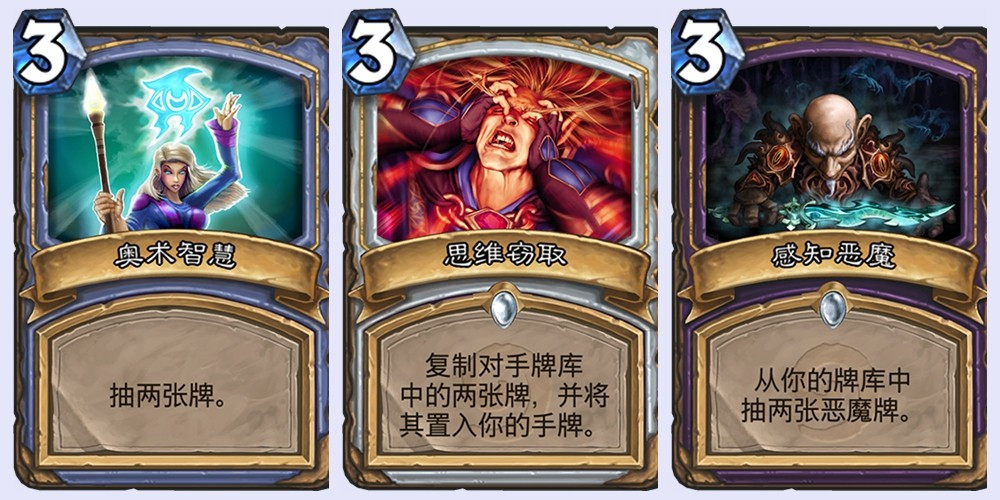 关于此卡的模型,对比三张牌:奥术智慧、感知恶魔、思维窃取,团伙劫掠是定向检索+过自己牌+连击过武器,各方面完胜。插话一句,要是雷克萨有一张3费过野兽的牌,不知道有多美。