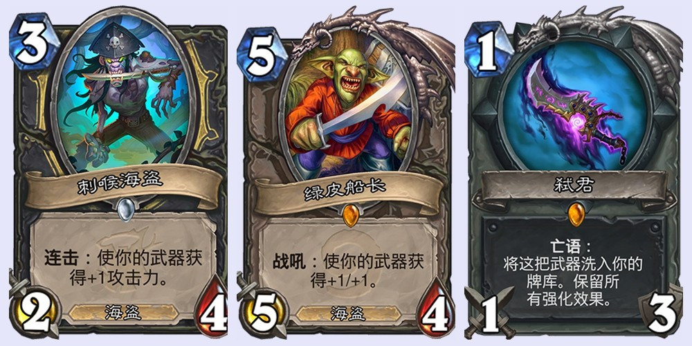 斗鱼主播秋日公布的新卡,新版盗贼被强推各种海盗套路。奇数贼可带,但英雄技能强势一般不会带武器,纯海盗贼也一副不靠谱的样子。当然,不要被这张牌的表面所迷惑,此卡竟然完美契合弑君贼,团伙劫掠定向检索刺喉海盗和绿皮船长,还能连击过弑君,解决了弑君贼疾跑回合前过牌慢的问题,不仅刀上手,还能稳定buff。幸亏弑君贼被快攻克不算太强,否者可能变成像青玉德那种中期给压力后期无限资源的bug卡组。