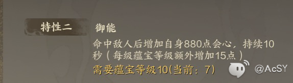 如上图,很快开启法宝特性2,搭配魔性大发的100会伤,法宝给的大概等于27会心概率,天魔咒血自身的会心率,基本就满暴击了,每次暴击还会增加咒血的伤害。如果没有玄火旗(48级护塔副本掉落),也可以使用度魂