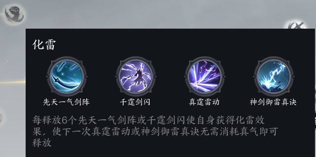 这样可以极大的缓解真气不够的尴尬,因为你真气续气的速度要比雷元的CD快,大概是1500多点真气后,雷元CD就好了,这时候就很尴尬,这时候化雷就很好的缓解了这样的尴尬,刚好在第三次雷动的时候免费一次,这时候可以足够的攒积雷元可以释放。