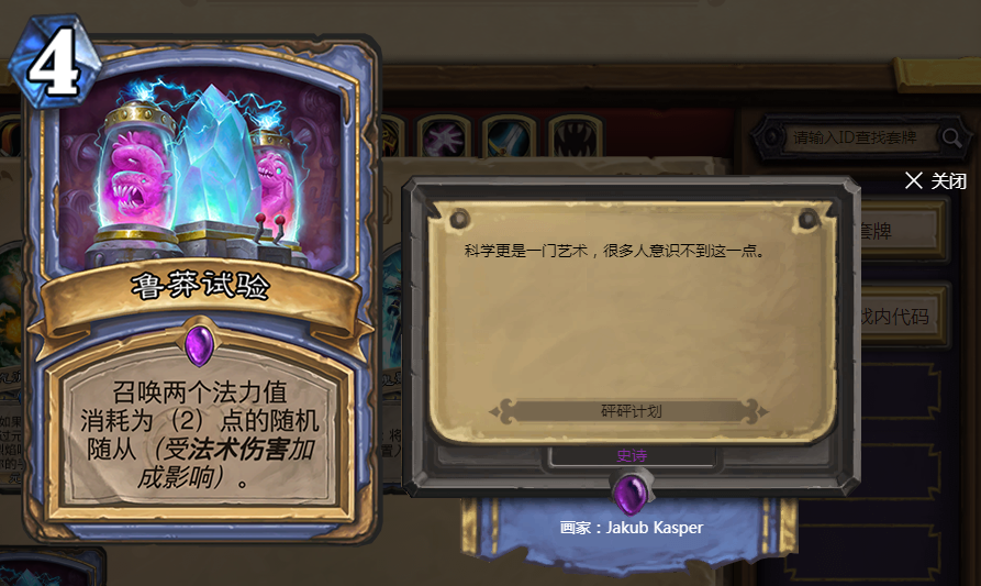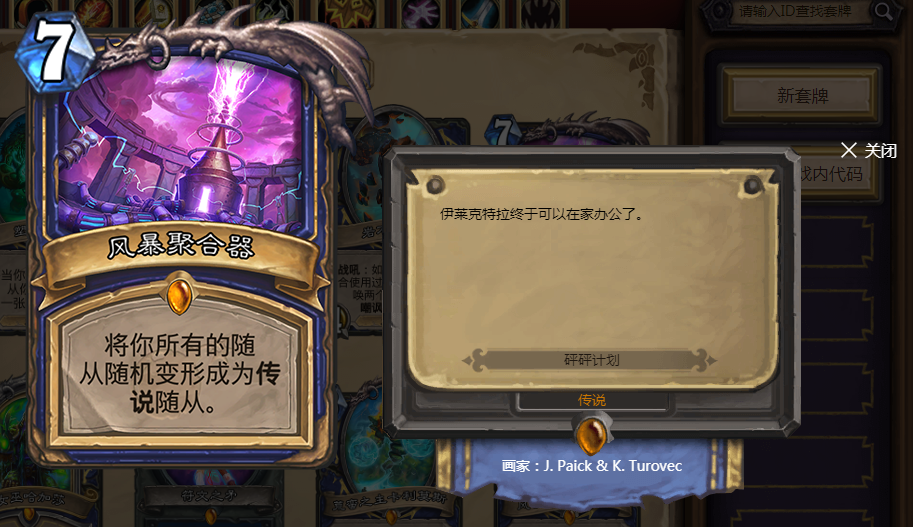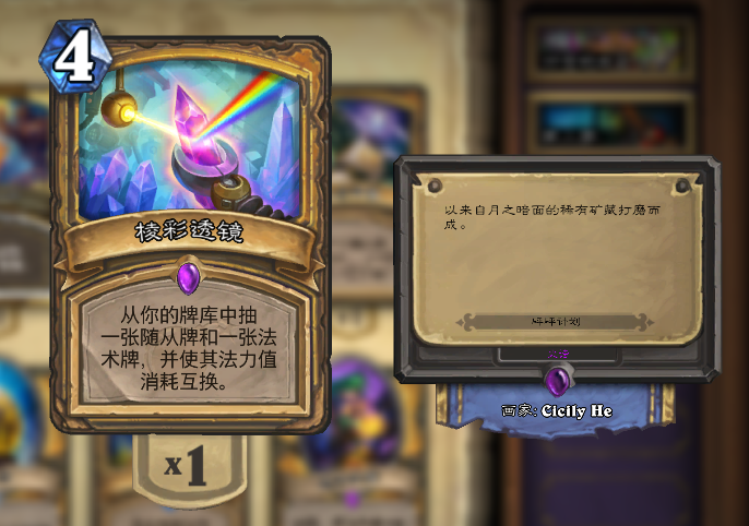 在部分视频中看到过这种玩法,即使用棱镜这张卡牌的效果,将低费法术牌跟高费随从牌做交换。然后再打出一些非常奇妙的combo,当然那是建立在一些极其精妙的组合的情况下。不过现在这张卡被换家骑开发,实战效果还不错呢。