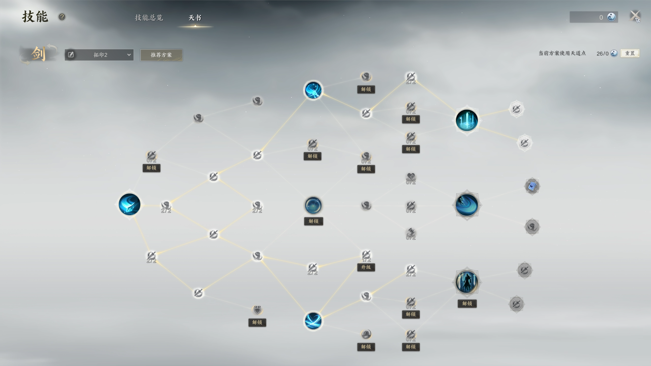 其中有很多天道点可自由发挥。其核心是点出斩龙流大招【寰宇千峰】,之后点出天书残页【清霜无量】。