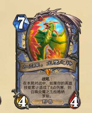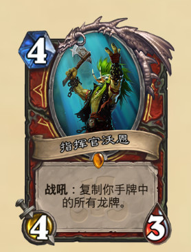 龙战要回来了?忘了是古神版本还是加基森版本,那套龙墙战游离于T1与T2卡组之间,随着4费嘲讽龙被拉进狂野,战士彻底与龙卡绝缘,这一次对龙战的复活似乎想象的过于美好,而且,这张橙卡虽然身材不亏,但是战吼效果其实触发条件比较苛刻,如果时机不好还是比较亏节奏的,合成必要性不高。