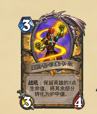 第一眼看过去怎么想都觉得应该是张战士卡,仔细研究了一下恍然大悟,这确实是张奶骑神卡,下版本骑士大概会向DK卡的OTK方向努力,达成之前版本并发的效果,冰箱加叠甲,以生命值换取护甲之后可以不断的奶自己到满血,绝壁能够成就早期WOW版本中玩家对圣骑士的印象——“打不死的小强”