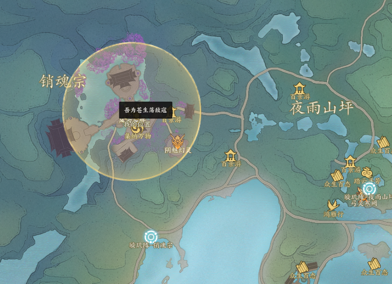 吾为苍生荡敌寇 该事件为斩恶锄奸战邪宗后续,原地等待事件刷新,打开地图查看位置 击败怪物