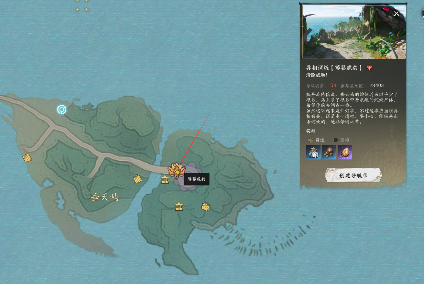 饕餮虎豹 54级 60级可攻略 坐标垂天屿传送阵右侧