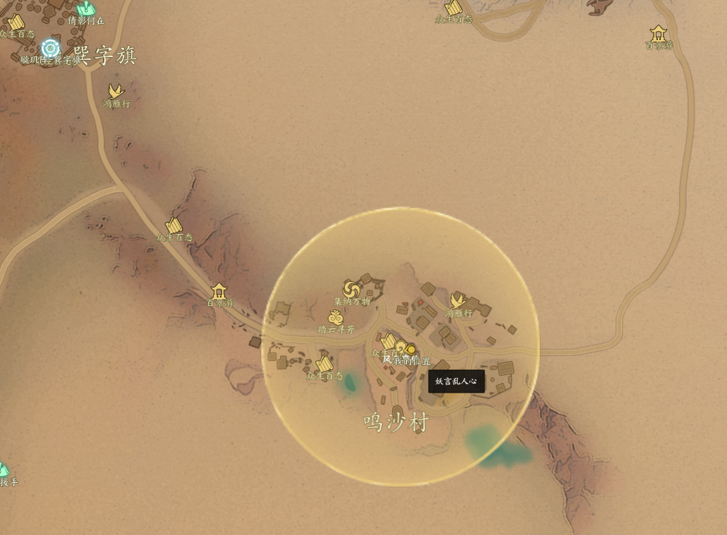 妖言乱人心 该事件为大漠飞花后续事件,原地等待事件刷新,打开地图查看位置 击败怪物
