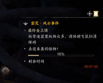 最怜金兰情 该事件为妖言乱人心后续事件,原地等待事件刷新,打开地图查看位置 跟随NPC击退怪物