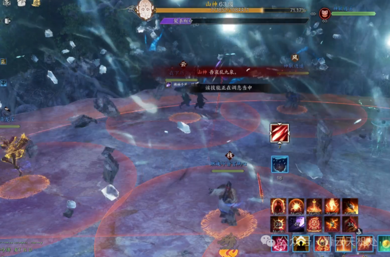 ①化戟穿金:boss读条化戟穿金,生成跟随主T移动的红色矩形,随后造成伤害。
