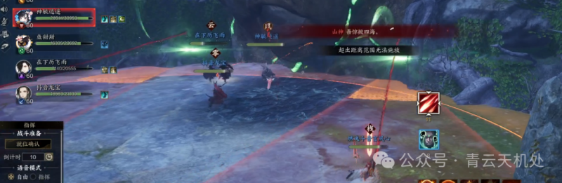 ③连线:随机点名2名玩家,分别从boss左右两侧连接一条红线,随后出现红色扇形。