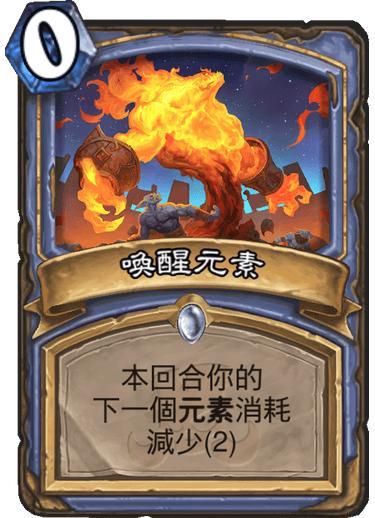 元素召唤。法师白卡法术:0费。本回合你使用的下手一张元素牌法力值消耗减少(2)。元素法师必备的补强卡,可以让很多强力的高费元素提前进场,如果新版本元素法体系完善的话,这回是一张非常强力的卡。