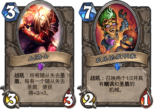 对于黑骑士这张卡牌,在炉石传说历史上总有一个争论,那就是黑骑士砍什么不亏。事实上,玩家总会把它与老佛爷联想到一起。从上古时期的“伐木者”(克制德鲁伊各种大树嘲讽随从)开始,只要新版本出现强力的嘲讽随从,这张消灭嘲讽生物的黑骑士总会被玩家们记起,但只要嘲讽随从不强势,黑骑士也就继续“隐身”,让玩家们想不起来还有这张卡牌的存在。