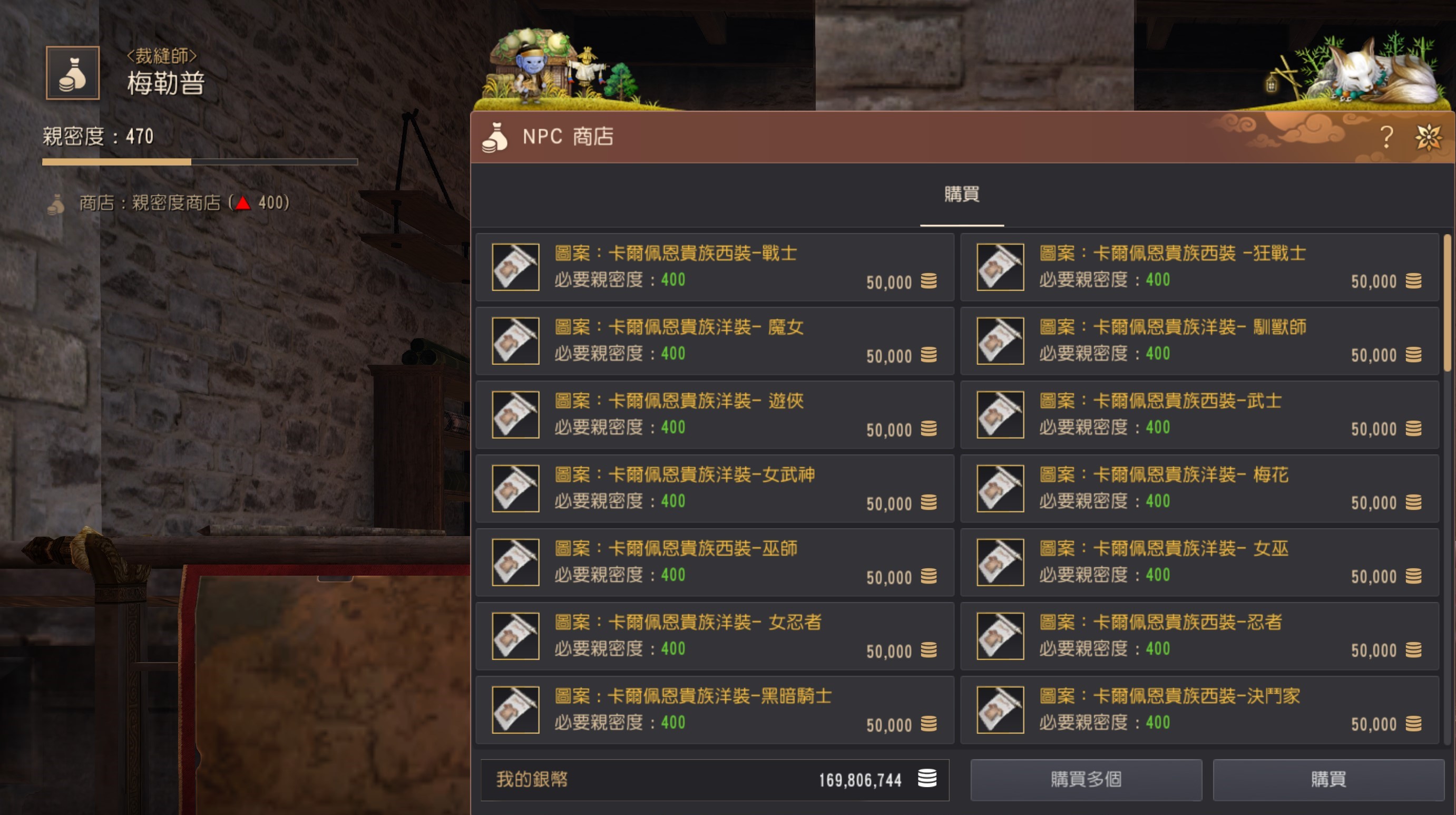 卡尔佩恩贵族套装与贵族洋装是一般盔甲装备,可以在交易所购买,