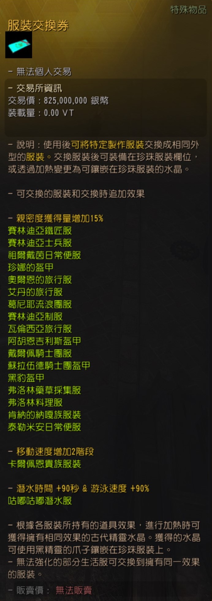 若是准备好卡尔佩恩贵族套装或洋装的话,透过服装交换券