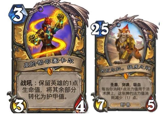 这两张新卡对于新版本的圣骑士卡组体系,已经十分的明显了,下个版本的奶骑必定崛起,高阶祭司塞卡尔这张卡的效果大大程度上提升了圣骑士的血量上限,而猛虎之神这张卡配合一些法术的使用,也具有很好的解场回血效果,配合上发布的其他一些新卡永恒祭祀、暂避锋芒和赞达拉的武士这些卡,强度都是很高,因此下个版本的骑士是目前公认的强势卡组,奶骑套路也必定是主流卡组。