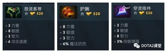 加上新版本TP不再占用物品栏,所以我们经常能看新版本很多核心英雄都是双系带、甚至三系带四系带。前期的 草鞋+双系带/护腕/挂件的性价比是远远大于假腿的。这三个中,又属系带性价比最高,所有属性敏捷英雄都喜欢。