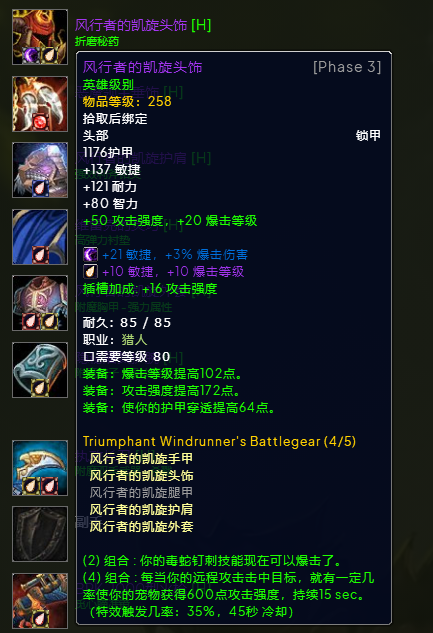 魔兽世界wlkP3射击猎BIS装备宝石附魔推荐