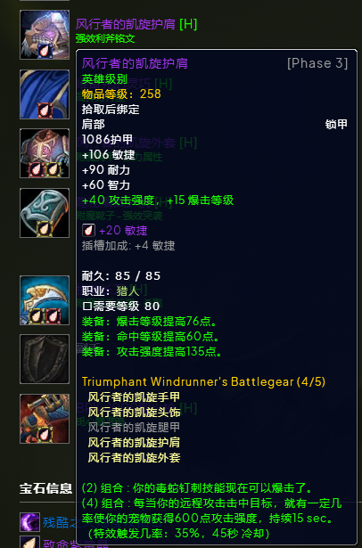 魔兽世界wlkP3射击猎BIS装备宝石附魔推荐
