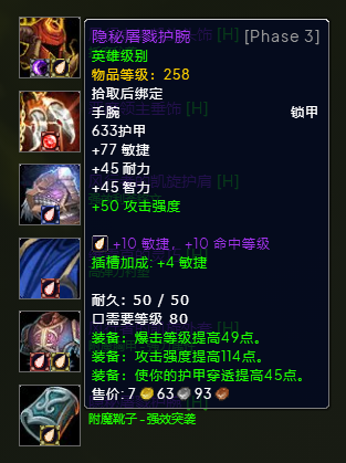 最优解是 隐秘屠戮护腕,附魔推荐附魔护腕 - 强效突袭