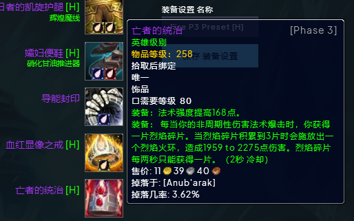魔兽世界wlkP3火法BIS装备宝石附魔推荐