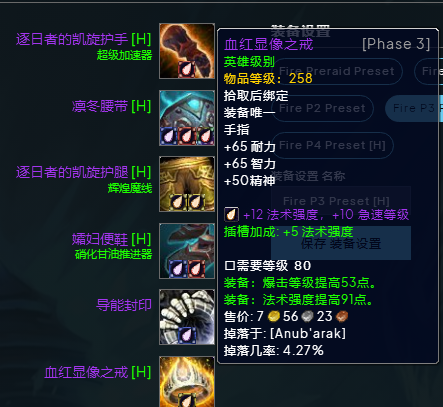 魔兽世界wlkP3奥法BIS装备宝石附魔推荐