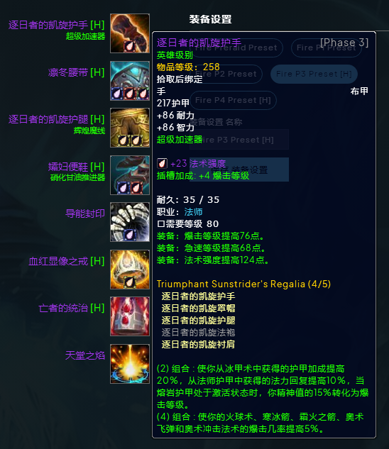 魔兽世界wlkP3奥法BIS装备宝石附魔推荐