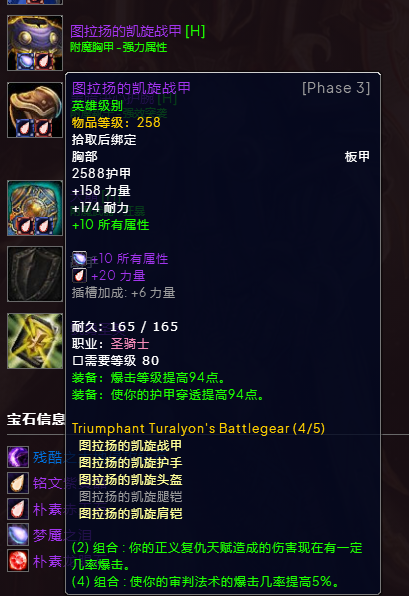 魔兽世界wlkP3惩戒骑BIS装备宝石附魔推荐