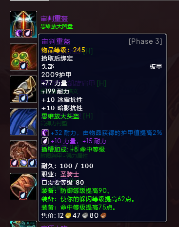魔兽世界wlkP3防骑BIS装备宝石附魔推荐
