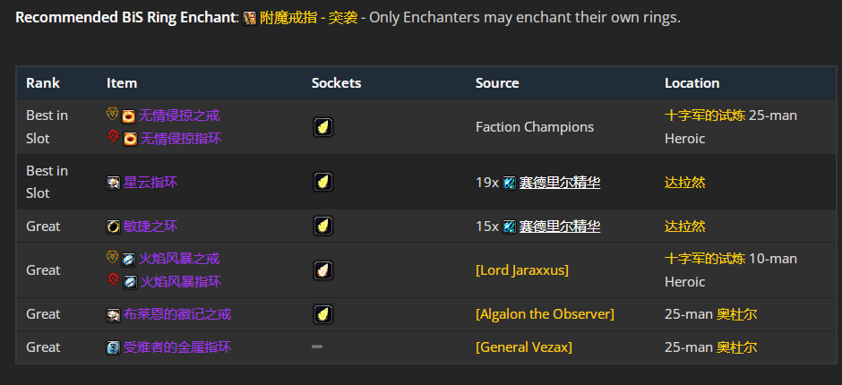 魔兽世界wlkP3增强萨BIS装备宝石附魔推荐