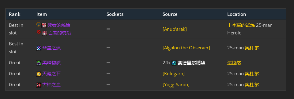 魔兽世界wlkP3增强萨BIS装备宝石附魔推荐