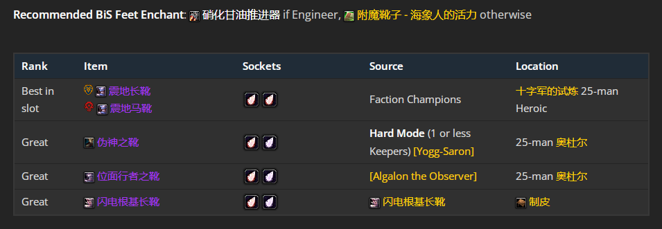 魔兽世界wlkP3元素萨BIS装备宝石附魔推荐