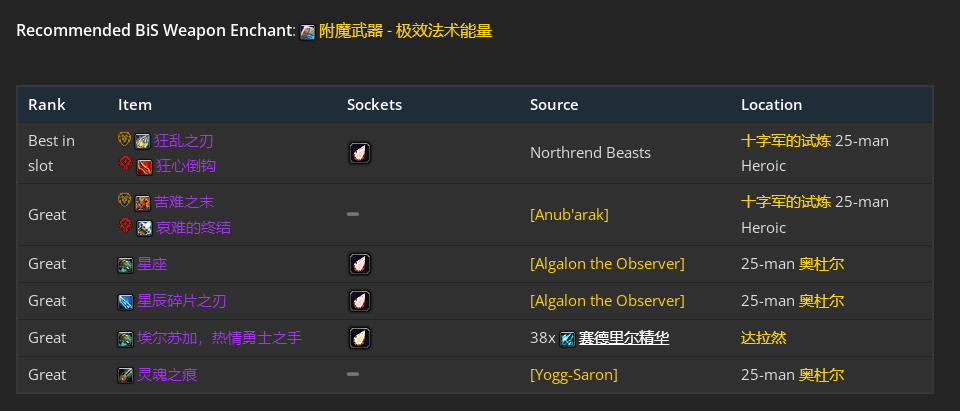 魔兽世界wlkP3元素萨BIS装备宝石附魔推荐