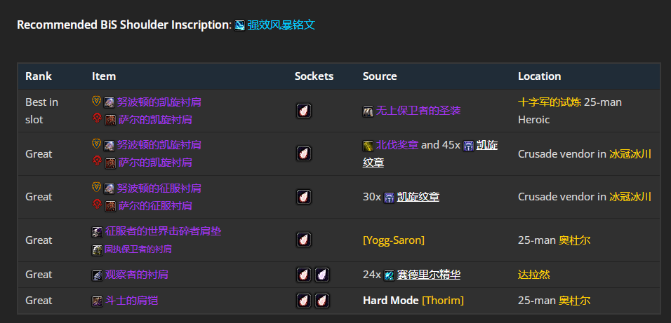 魔兽世界wlkP3元素萨BIS装备宝石附魔推荐