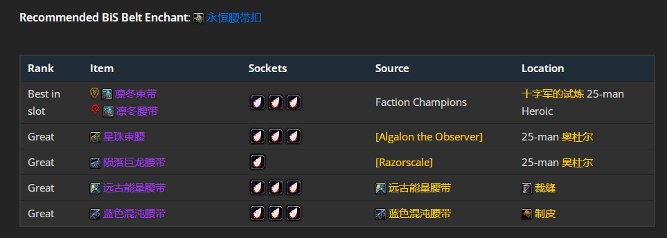 最优解是凛冬束带 凛冬腰带,附魔推荐永恒腰带扣