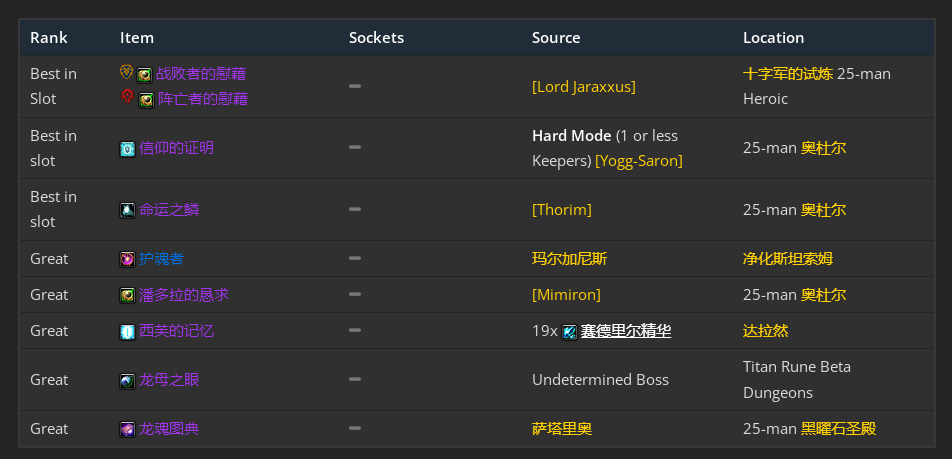 魔兽世界wlkP3奶萨BIS装备宝石附魔推荐