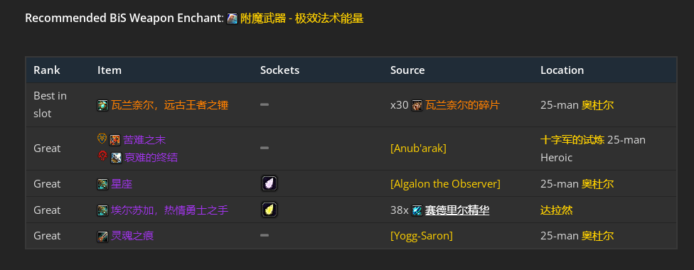 魔兽世界wlkP3奶萨BIS装备宝石附魔推荐