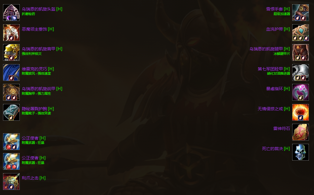 魔兽世界wlkP3狂暴战BIS装备宝石附魔推荐