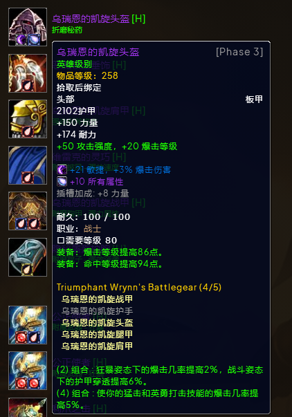 魔兽世界wlkP3狂暴战BIS装备宝石附魔推荐