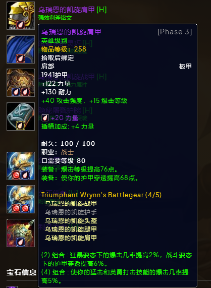 魔兽世界wlkP3武器战BIS装备宝石附魔推荐