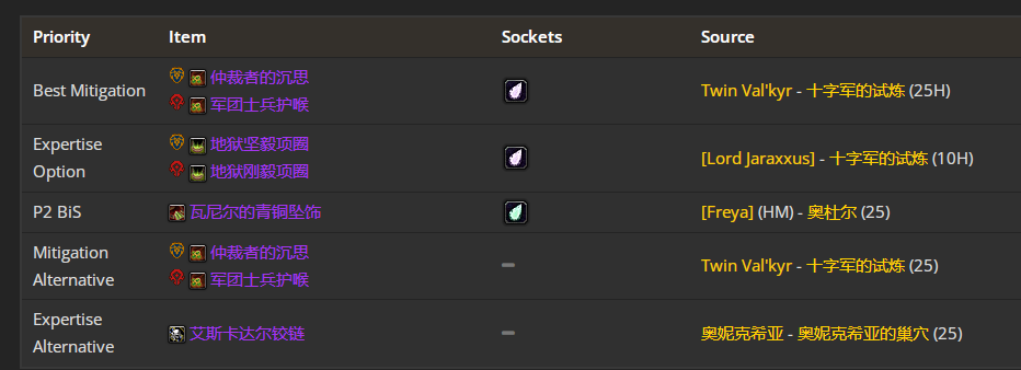 魔兽世界wlkP3防战BIS装备宝石附魔推荐