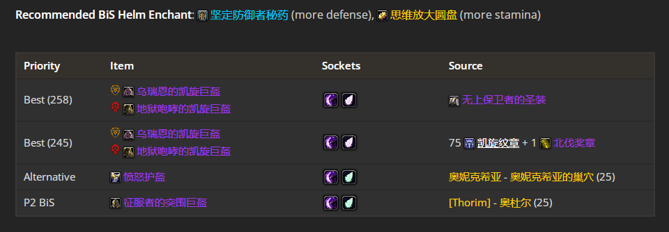 魔兽世界wlkP3防战BIS装备宝石附魔推荐