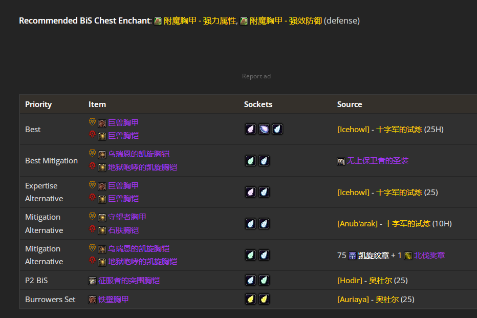 魔兽世界wlkP3防战BIS装备宝石附魔推荐