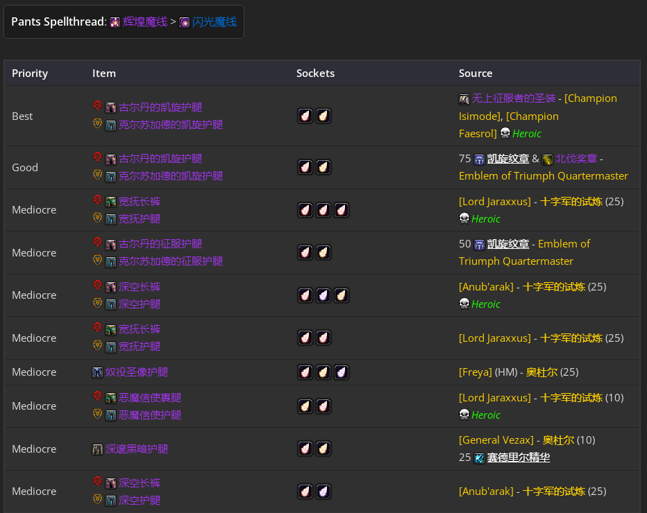 魔兽世界wlkP3痛苦术BIS装备宝石附魔推荐
