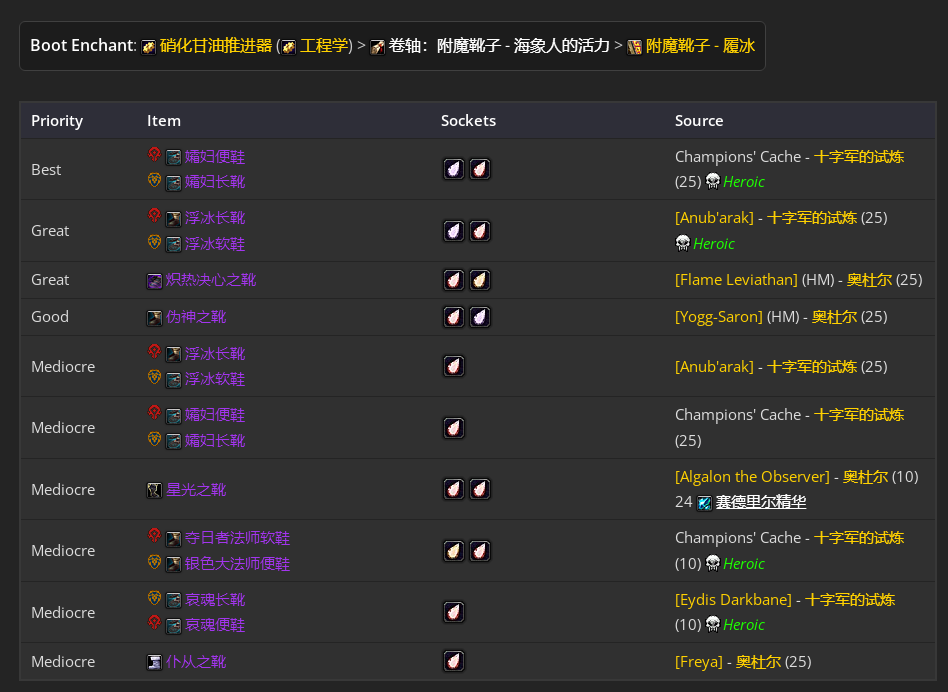 魔兽世界wlkP3痛苦术BIS装备宝石附魔推荐