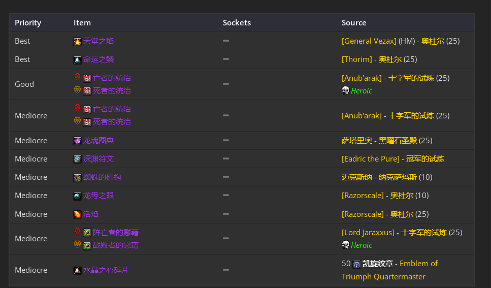 魔兽世界wlkP3痛苦术BIS装备宝石附魔推荐