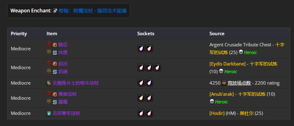 魔兽世界wlkP3痛苦术BIS装备宝石附魔推荐