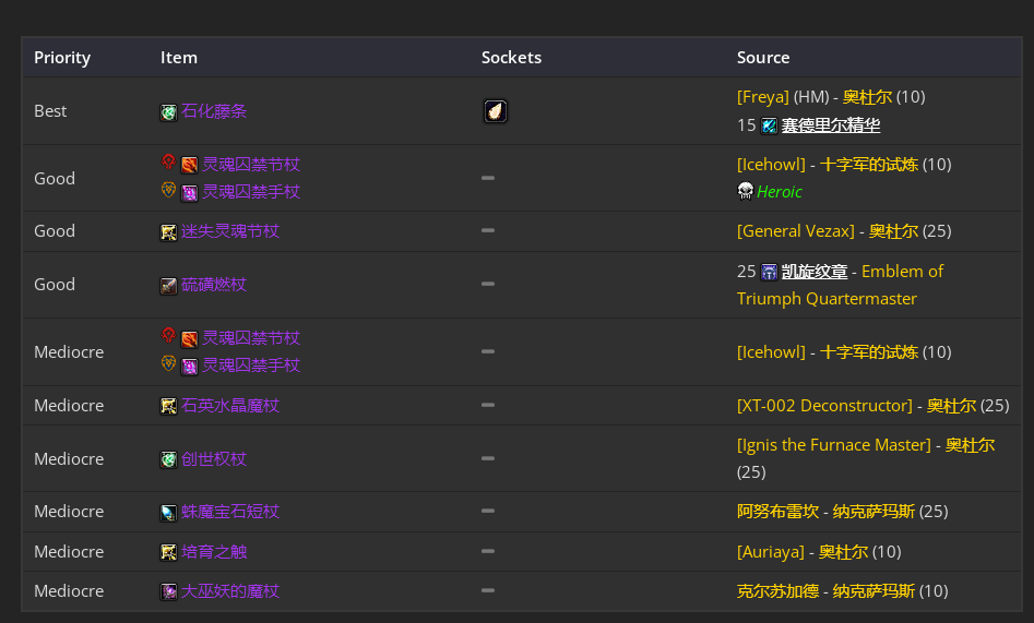 魔兽世界wlkP3痛苦术BIS装备宝石附魔推荐