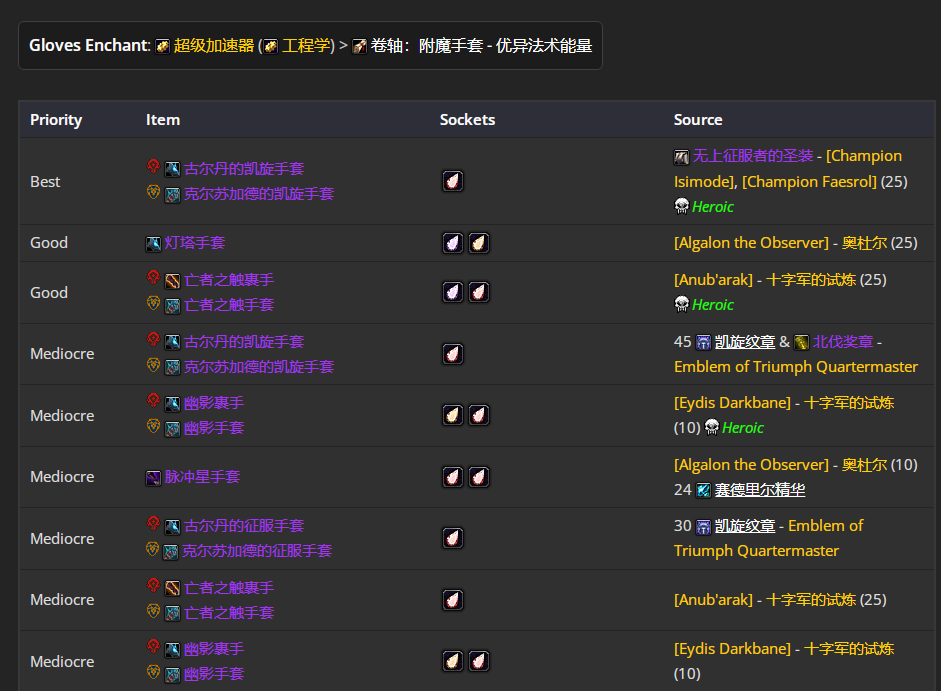 魔兽世界wlkP3痛苦术BIS装备宝石附魔推荐