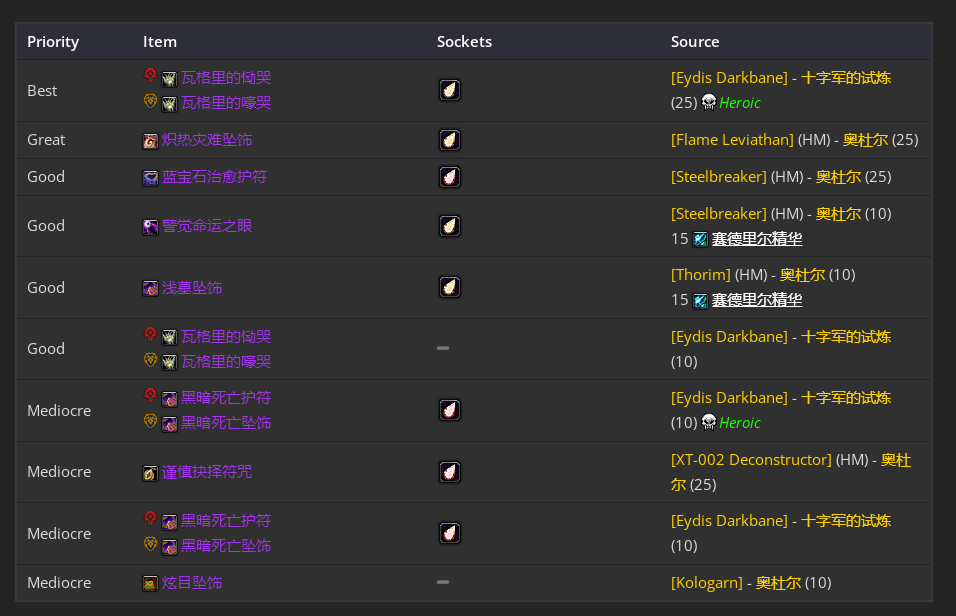 魔兽世界wlkP3毁灭术BIS装备宝石附魔推荐