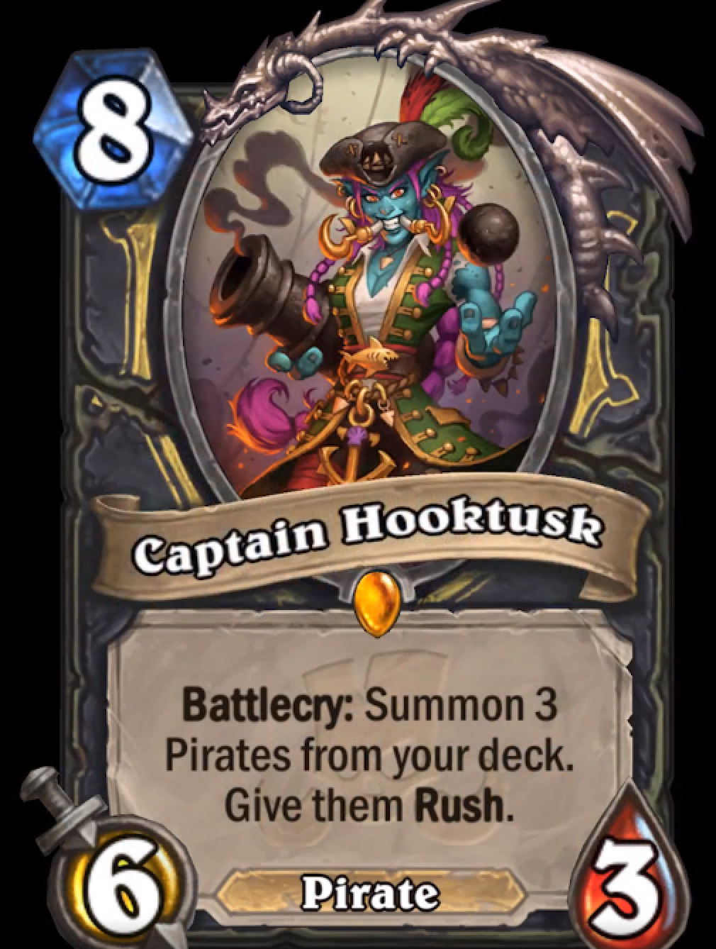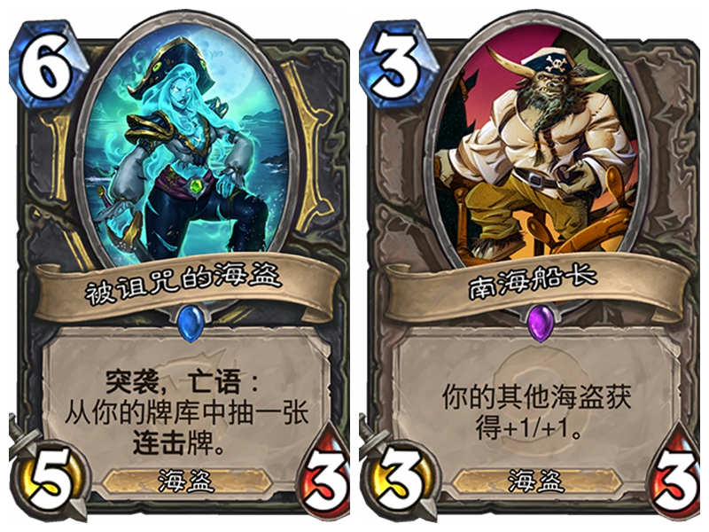 简中暂未放出,暂且用繁英文版卡牌图。863身材,海盗属性,战吼:从你的牌库中召唤三个海盗,使它们获得突袭。
